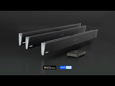 Sistema de audio pro para salas grandes, certificado para Microsoft Teams, con Microphone Mist de nueva generacion y cobertura completa desde una sola barra mural sin microfonos de expansion.
